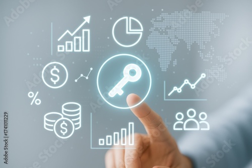 Business Growth Strategy with Key Elements Graphs and Charts on Digital Screen for Financial Analysis