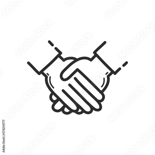 Business handshake, contract agreement thin line icon. Hand drawing design style. Vector.