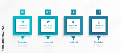 Business infographic design template with 4 options, steps or processes. Can be used for workflow layout, diagram, annual report, web design