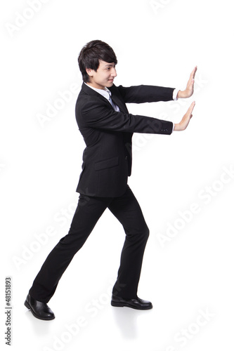 business man happy pushing