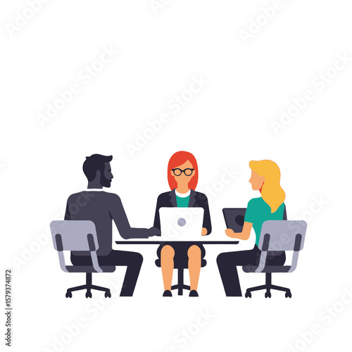 Business Meeting Illustration-Diverse Team Collaboration-People Working Together-Office Scene-Teamwork-Professionals Discussing Project-Vector Art-Conference Room-Flat Design