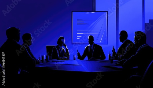 Business Meeting in a Blue Room, Discussions Take Place with Important Topics & Ideas