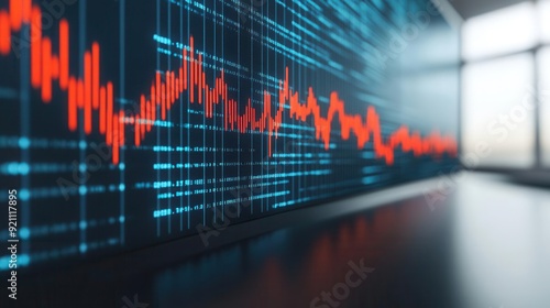 Business meeting with holographic displays of fluctuating stock data, Illustration, Monochrome, Minimalist, Professional