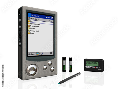 business object, pda, pager, batteries and pen.