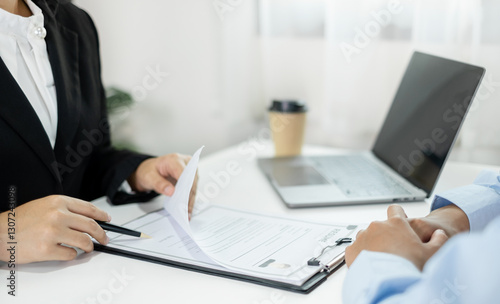 Business people hold a resume and talk to job applicants for job interviews about careers and Their personal history in the company. Recruitment concepts