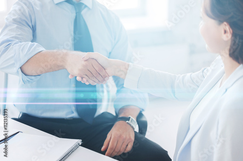 business people shaking hands in office