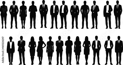 Business people silhouette vector set, corporate team icons, office workers illustration, professional attire clipart, male female business characters, black suit graphic