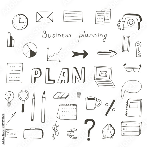 Business planning set vector illustration, hand drawing