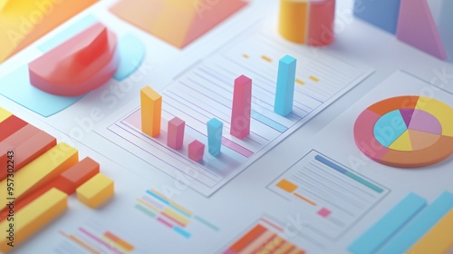 Business report analysis, person reviewing charts and graphs, 3D illustration