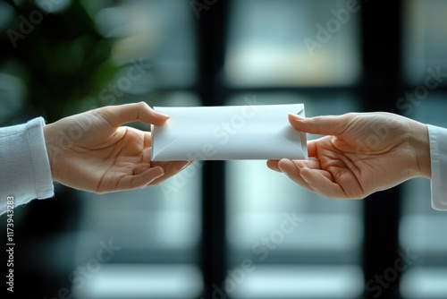 Business Reward Handover Asian Manager Giving Bonus Envelope to Employee in Modern Office