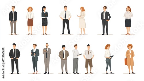 Business staff vector design set, showcasing a variety of characters in different roles within a corporate office