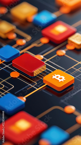 Business strategy technology execution concept. Colorful digital interface with app icons and connections.