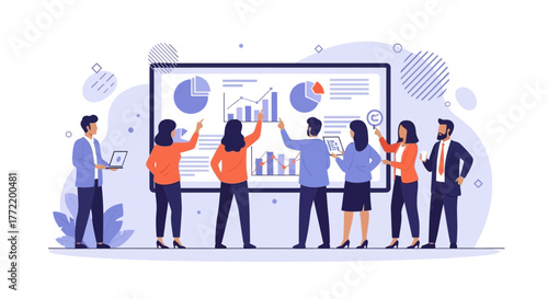 Business Team Discussing Analysis Data And Presenting Important Charts And Graphs
