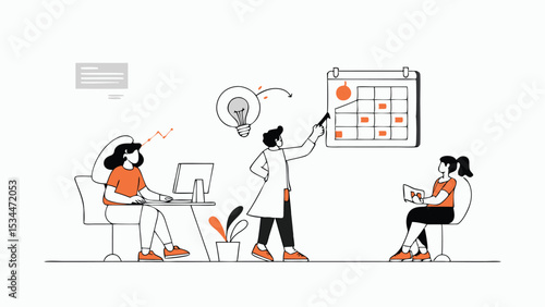 Business team planning meeting illustrative design depicting collaboration brainstorming and scheduling for successful project management.