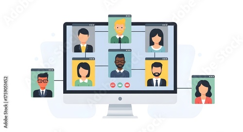 Business Team Video Chat on Desktop Screen – Modern Digital Office