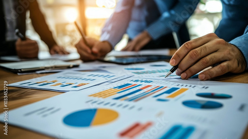 Business team working with document at desk in office