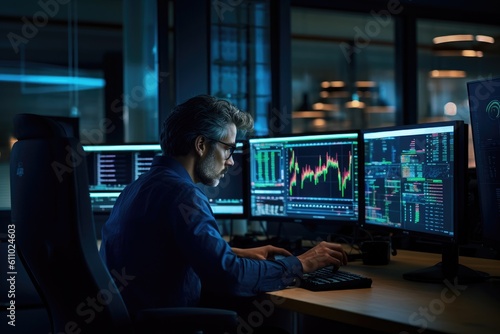businessman analising market on a chart on a computer - Illustration created with generative ai