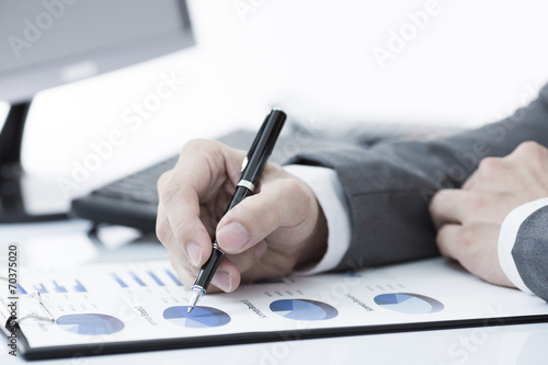 Businessman analyzing investment charts with computer. Accountin