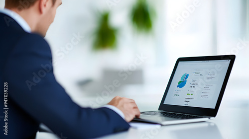 Businessman at desk concentrating on laptop showing daily deals and promotions, emphasizing the significance of digital marketing strategies in modern business environment