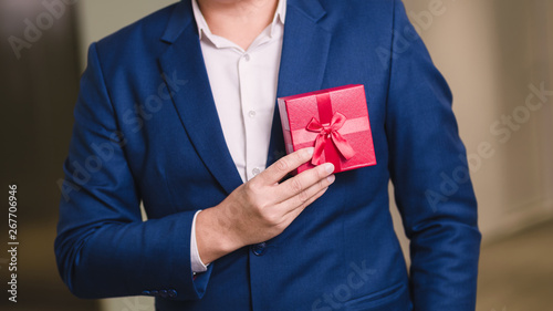 Businessman holding the red gift box