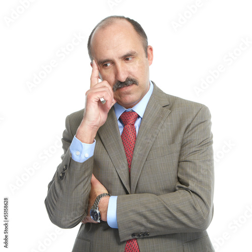 Businessman on a white background. The thoughts