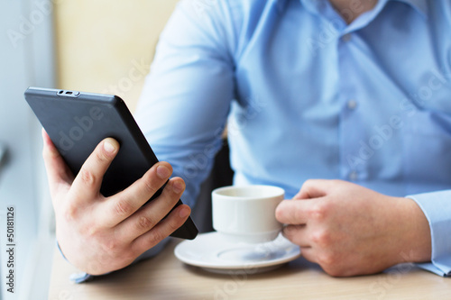 Businessman relaxing during coffee break at workplace