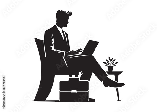 Businessman using laptop silhouette design. Office man using laptop silhouette vector illustration