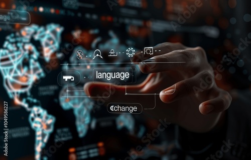 Businessman Using Virtual Screen for Online Language Learning and Global Communication