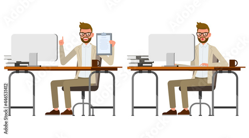 Businessman wear brown suit character vector design. Presentation in various action.