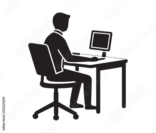 Businessman working on laptop. Working from home: remote job illustration. Computer desk setup a workplace icon.