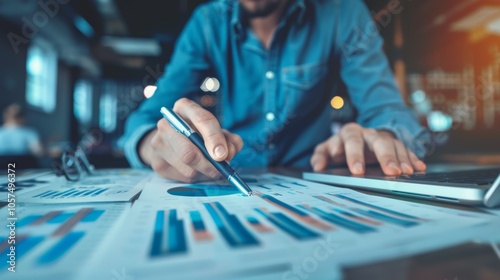 Businessman working with data charts and laptop