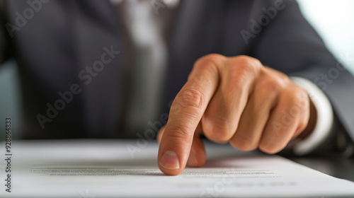 Businessman's Hand Pointing to Document