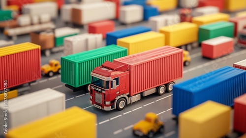 Busy Central Delivery Hub with Trucks Arriving at Different Levels for Fast-Paced Logistics