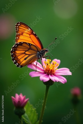 Butterfly Perched on a Wildflower Stem, sunny meadow, insect life