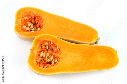 butternut squash cut in halves isolated on white background