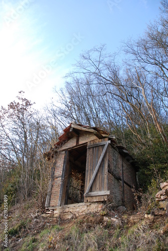 Cabane délabrée avec porte ouverte
