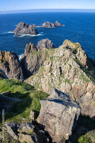 Cabo Ortegal lighthouse in Cariño, Galicia, Spain—where the Atlantic Ocean meets the Cantabrian Sea. Stunning cliffs and ancient rocks shape this wild coastal