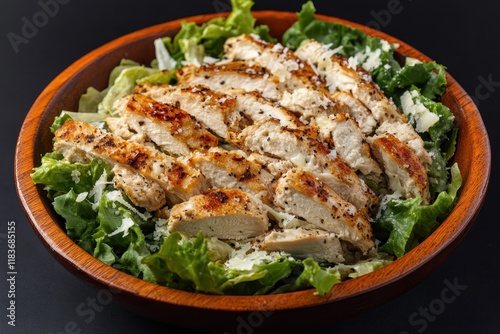 Caesar Salad Chicken and Parmesan with Green Lettuce Closeup View