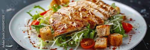 Caesar Salad with Roasted Chicken Breast, Croutons, Cherry Tomatoes and Grated Parmesan Cheese