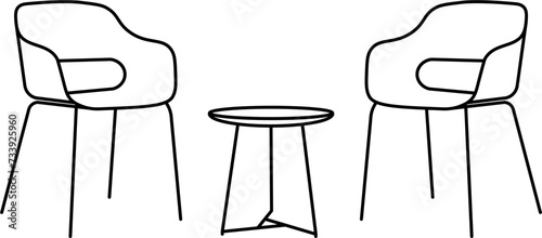 Cafe Table and Chair Outline Illustration Vector