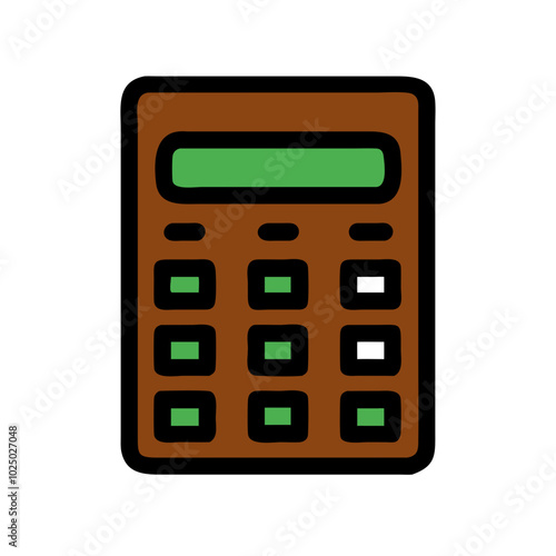 Calculator vector icon, financial calculations, mathematical tool, minimalist line art style, icon on transparent background, low-rise construction theme, green-brown color palette