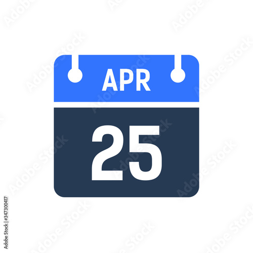 Calendar Date Icon - April 25 Vector Graphic