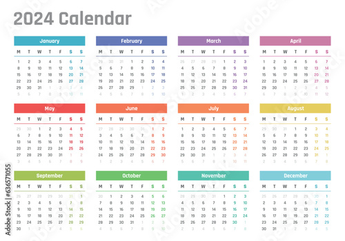 calendar for 2024 starts monday, vector calendar design 2024 year