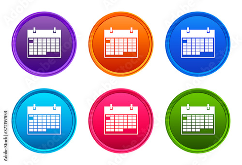 Calendar icon luxury bright round button set 6 color vector