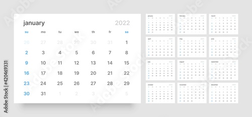 Calendar template for 2022 with week start on Sunday.