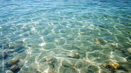 Calm clear water surface with sunlight reflections on shallow sea, Ai Generation