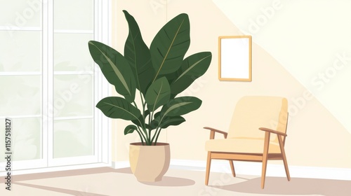 Calm Living Room with Plant and Chair, Minimalist Interior Design