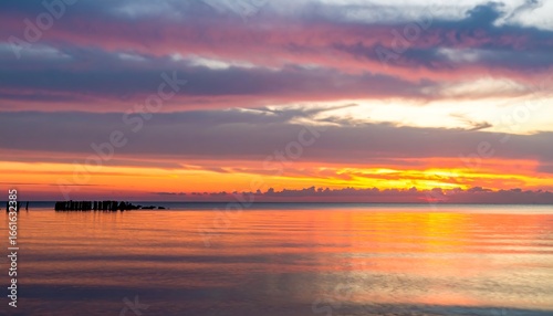Calm morning fire sky water