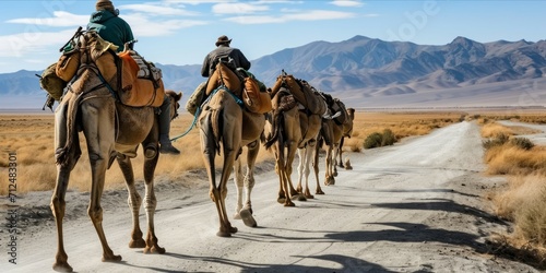 Camel caravan in the Sahara desert, Morocco, Africa. The concept of travel and adventure, isra mi'raj