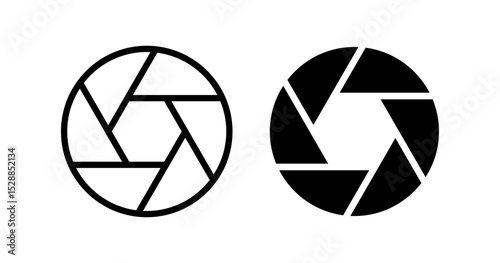 Camera icon. Camera lens. Black shutter zoom isolated on white background. Logo photo. Aperture diagram. Eye diaphragm. Silhouette circle lenses. Flat cinema circles for photos. Vector illustration